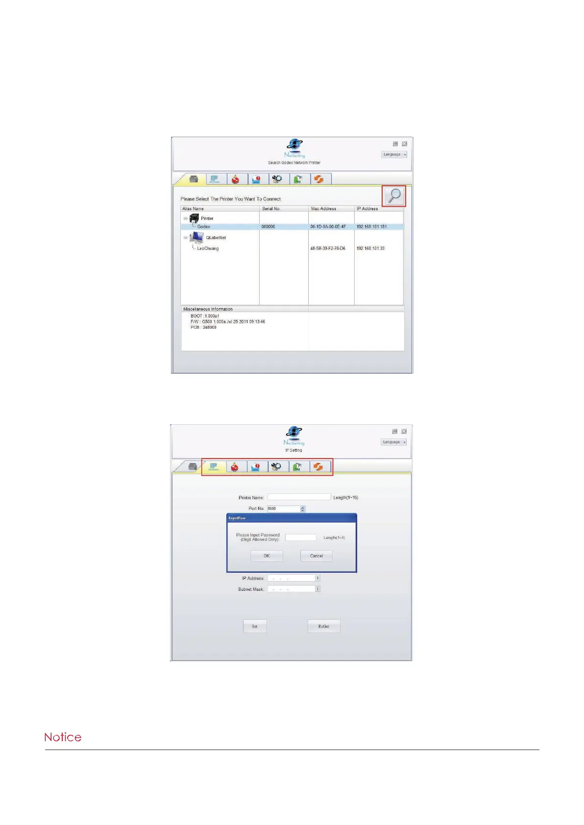 Click the magnifier icon to search the Godex printers which are connected via Ethernet port in you network