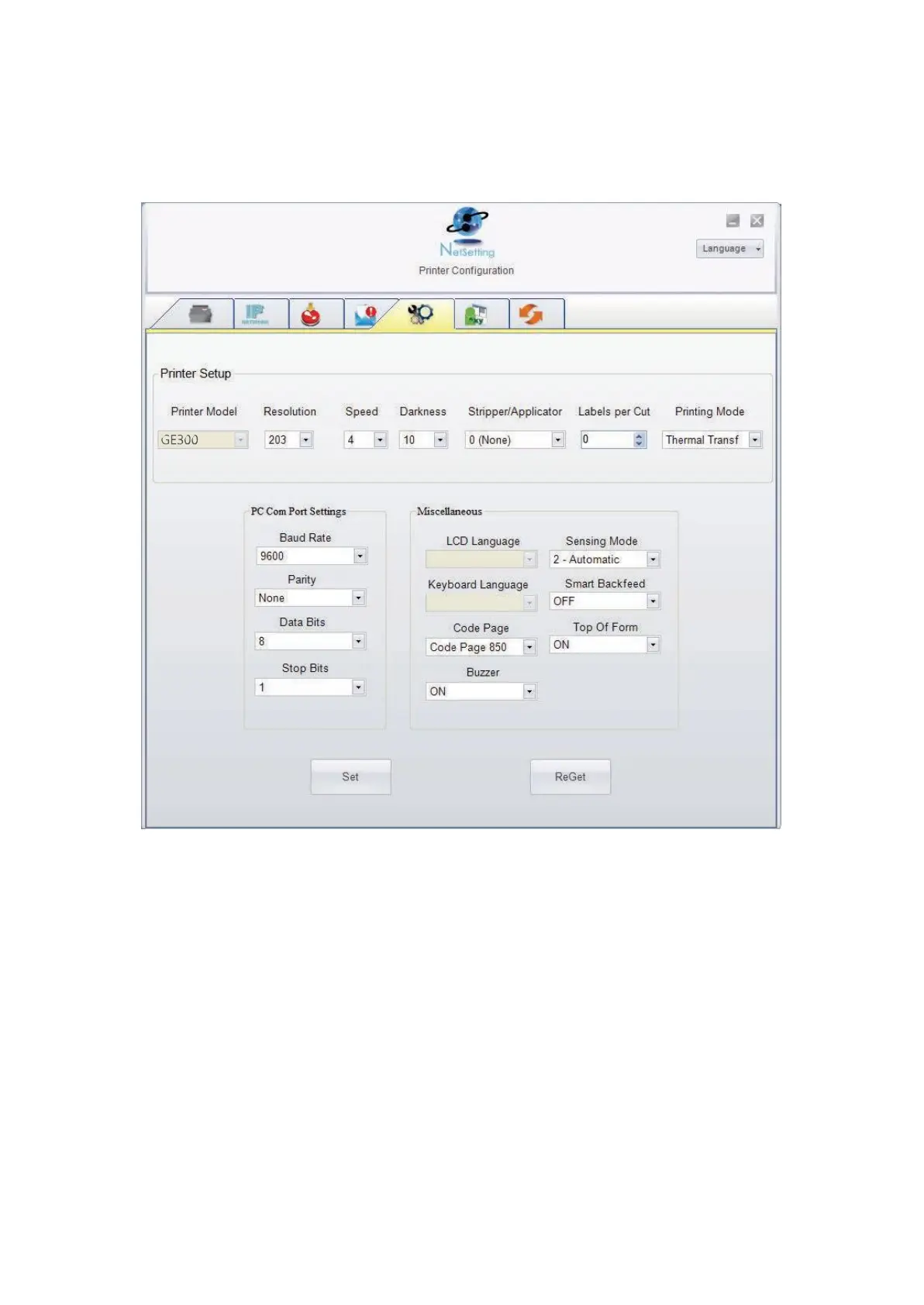 You can press “Set” button to apply the settings and “ReGet” button to refresh the setting values.