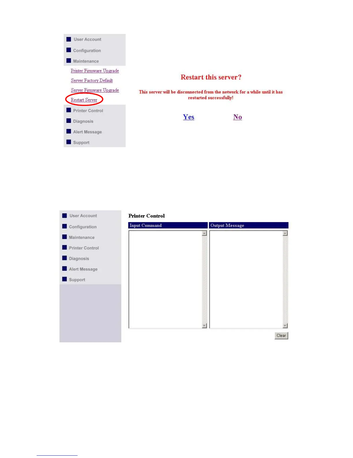 Input printer's command language in "Input Command" window and press Enter key, the server will then