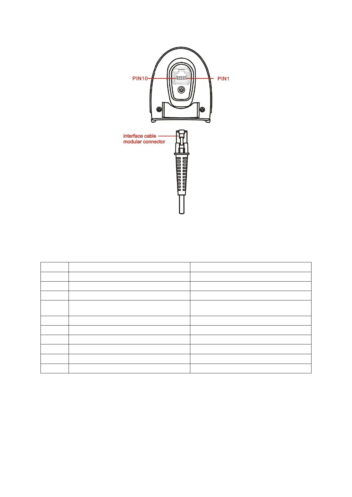 The pin-outs descriptions in Table 2-1 apply to the cable connector on the scanner and are for