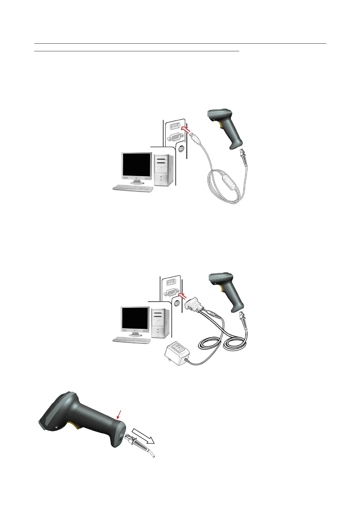 1. Refer to Figure 2-3, connect the USB interface cable to the bottom of the scanner.