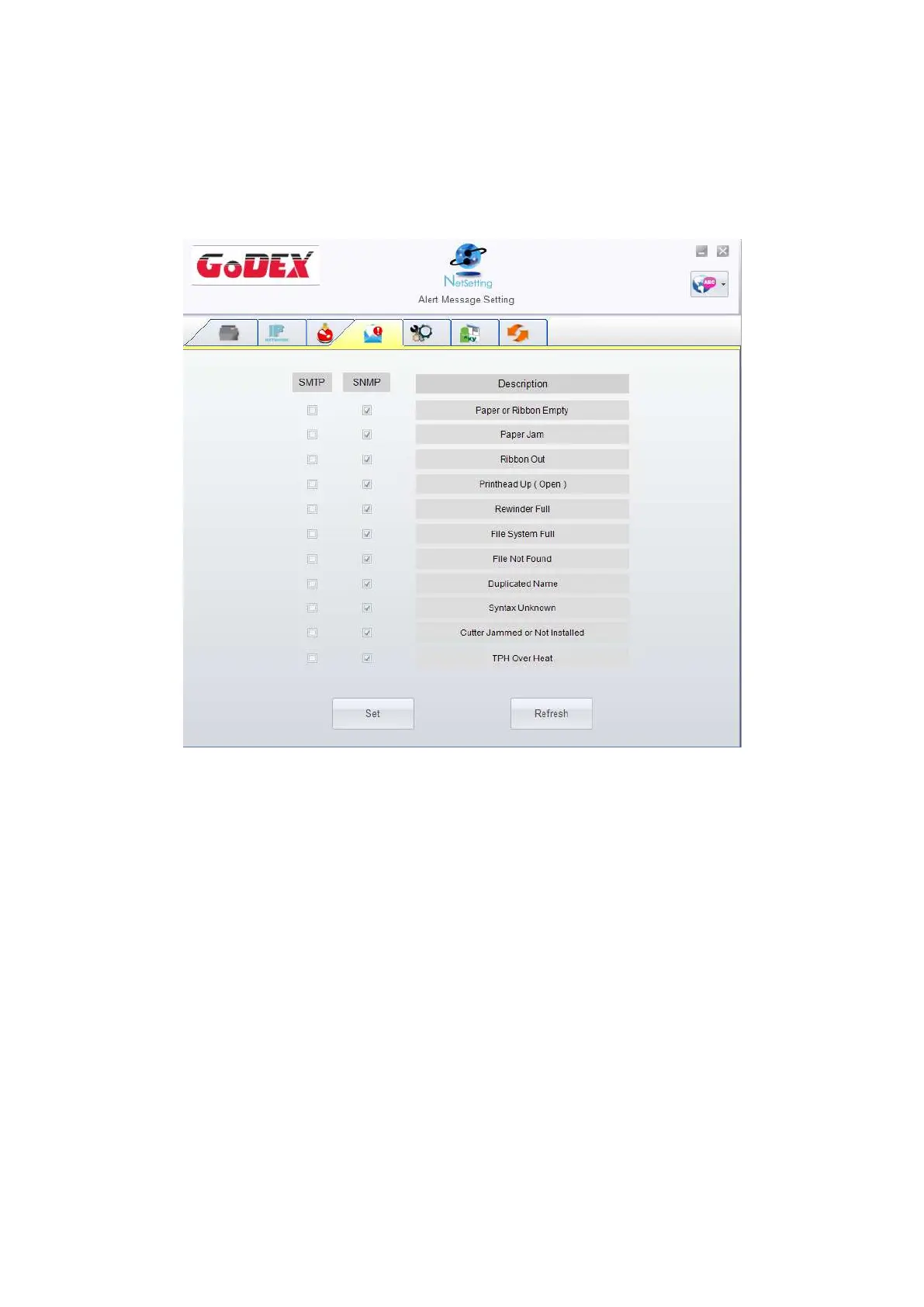 Yo u c a n p re ss “ Se t” b utto n to a p p ly the se tting s a nd “ Re fre sh” b utto n to re fre sh the se tting va lue s.