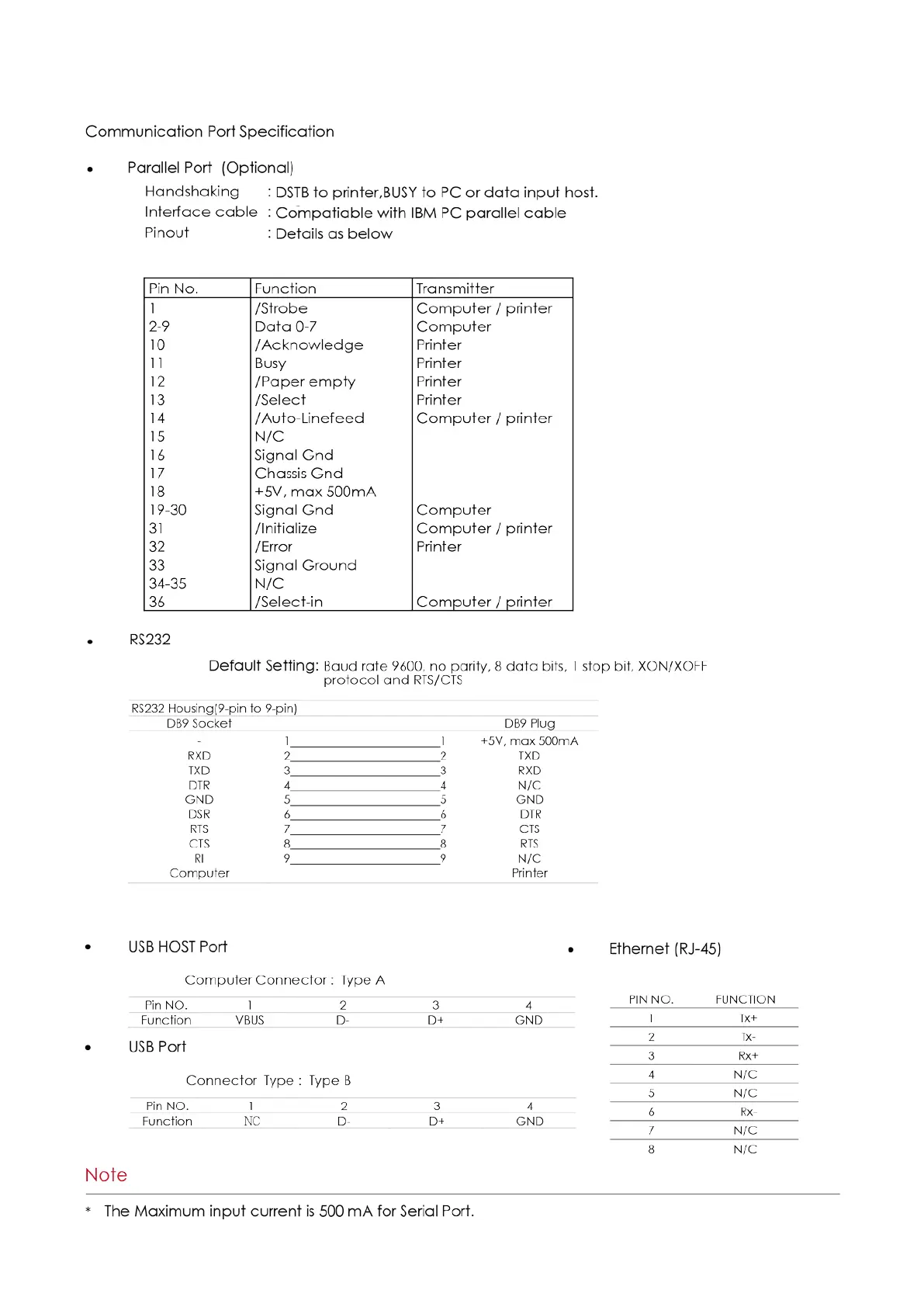 Godex HD830i - Appe Ndix - C O M M Unic a Tio N Po Rt Spe C Ific a Tio N