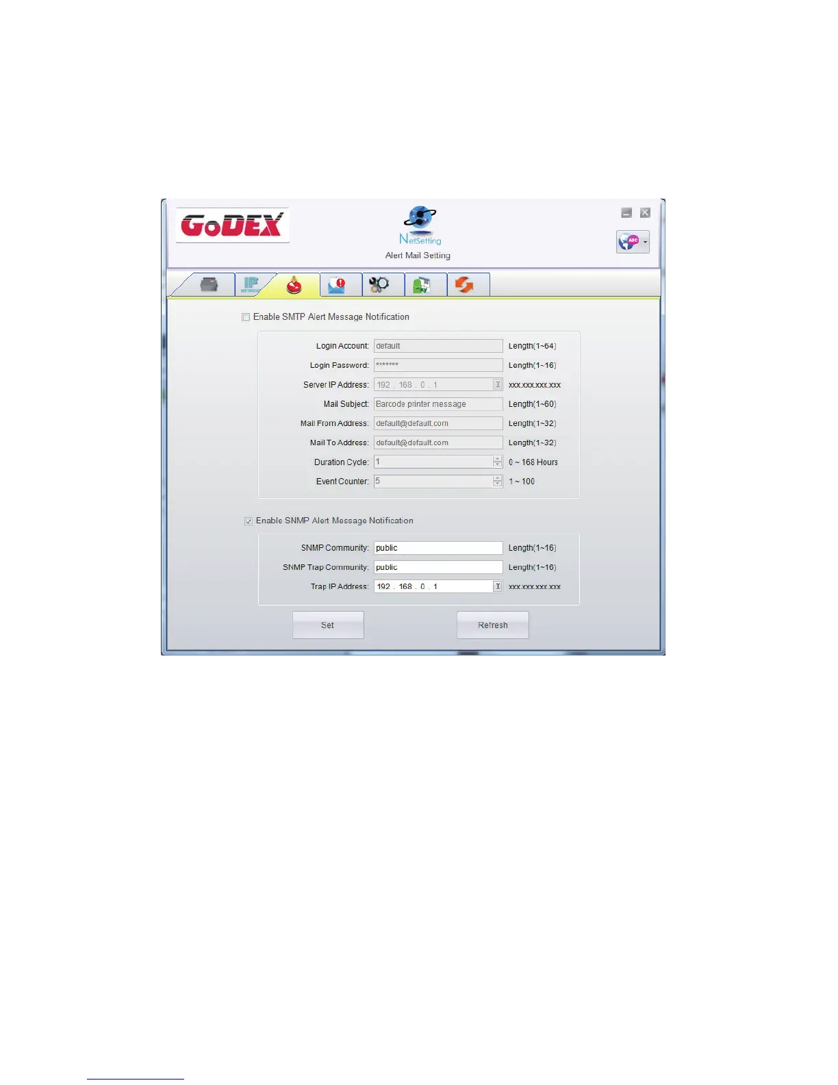 NetSetting will send the alert messages to designated mail account when the error happened on printer.