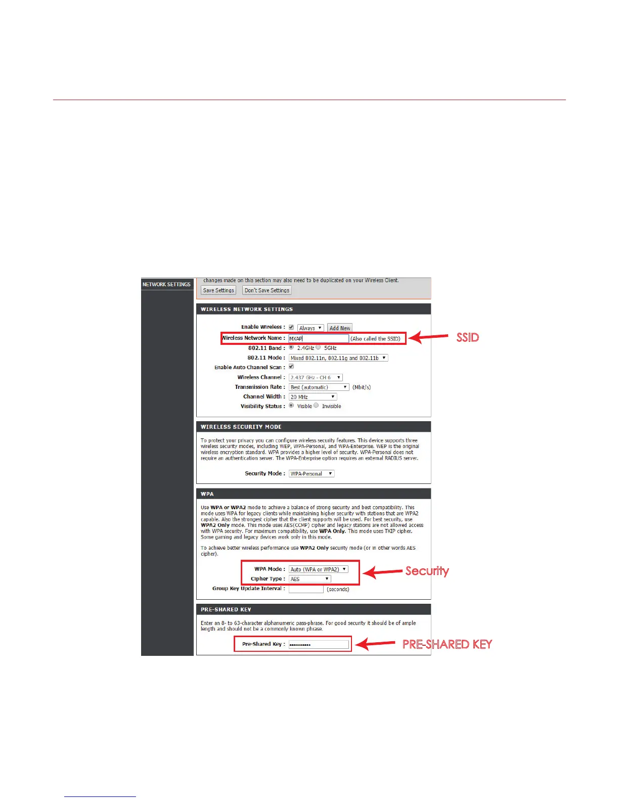 About the parameters of wireless access point, please refer to the figure below ( Example : D-Link AP)