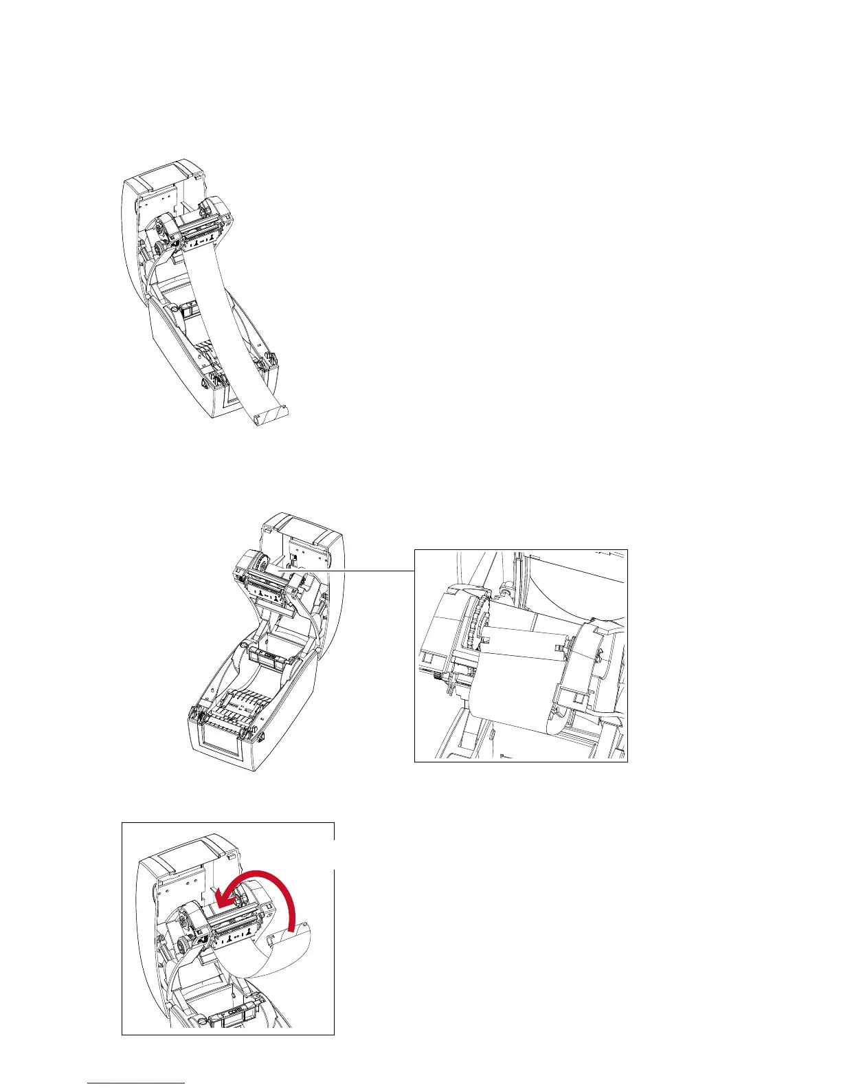 1. Pass the ribbon to round the print head.