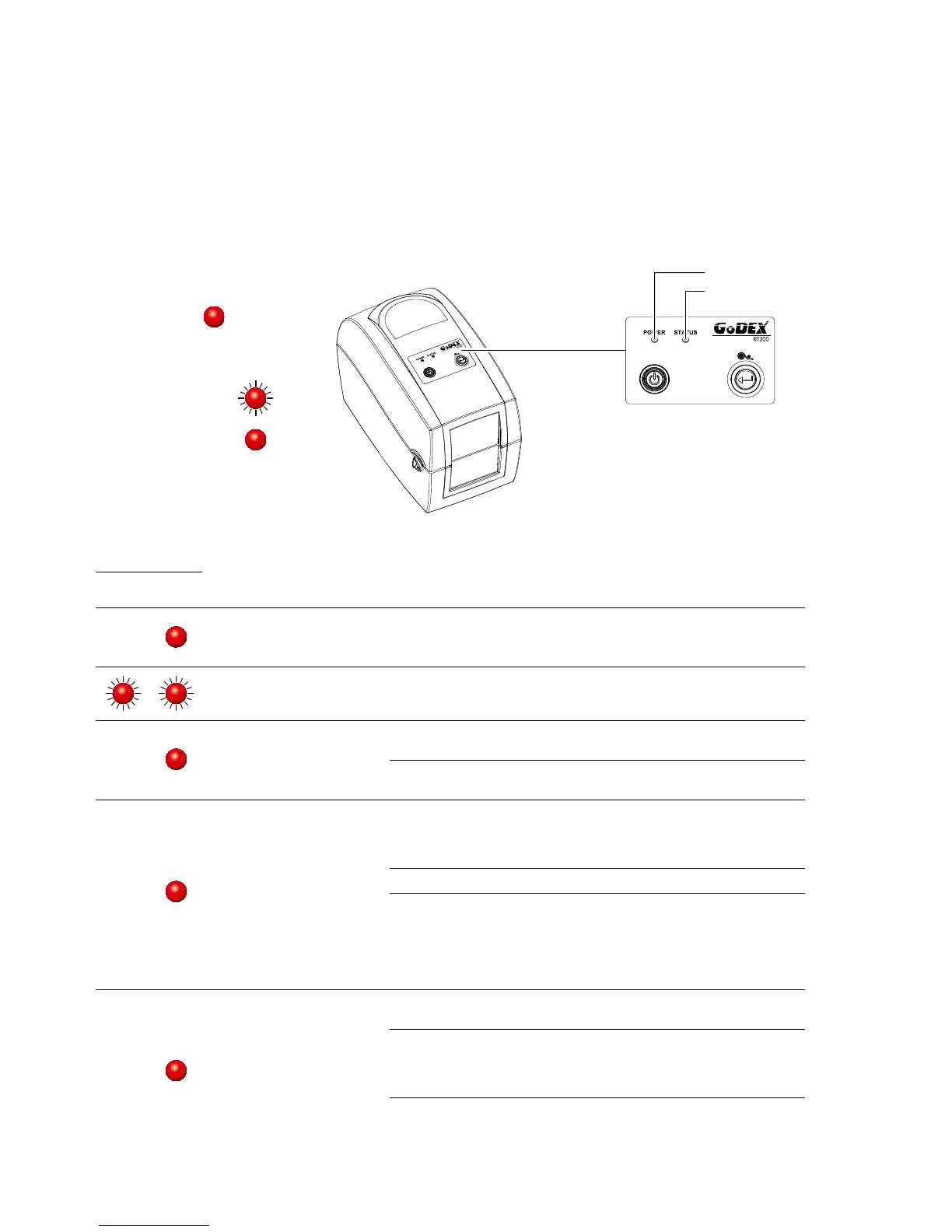 In the event of a problem that prevents normal functioning of the printer, you will see an error message on LED