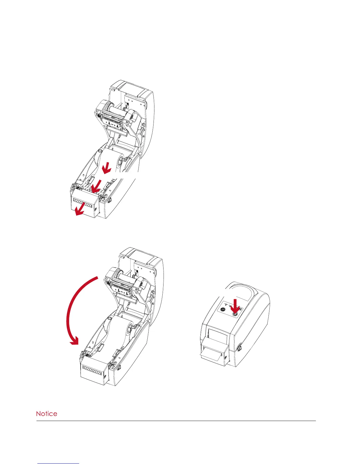 2. Close the top cover and printing mechanism. To finish, press the FEED button to set the label position.