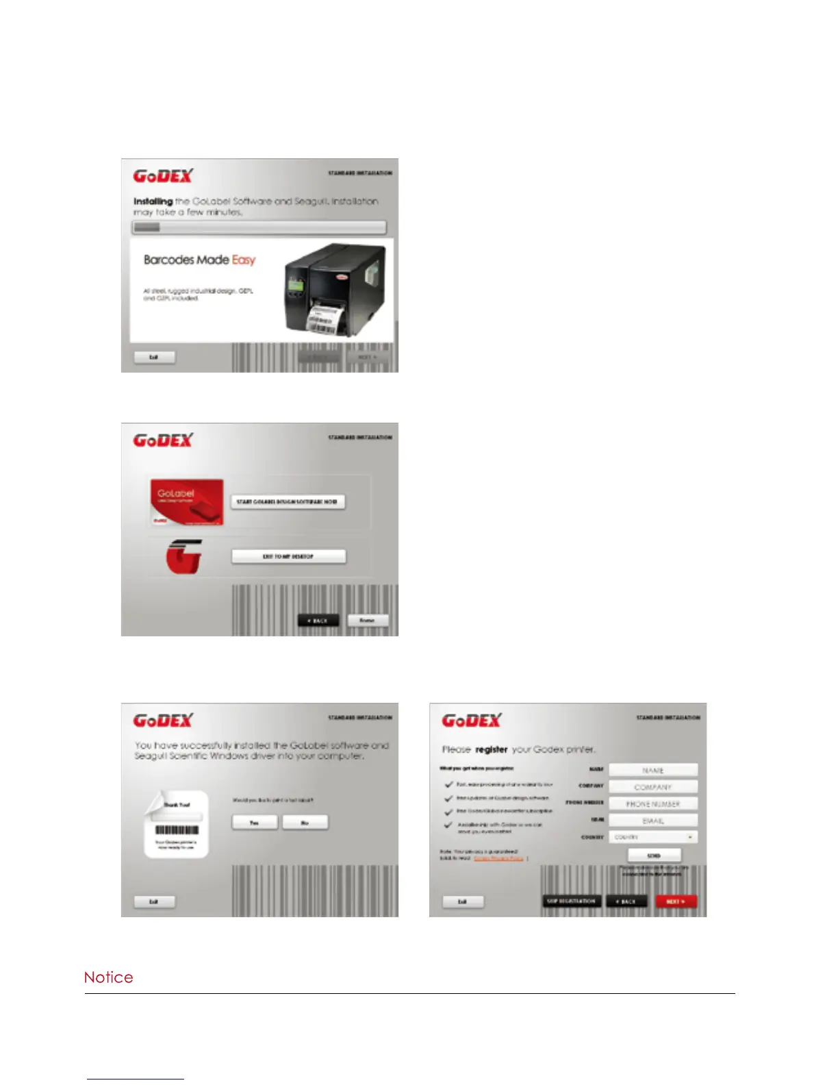 6. As the optional steps, you can also print a test label or register your printer during the “Standard Installation”