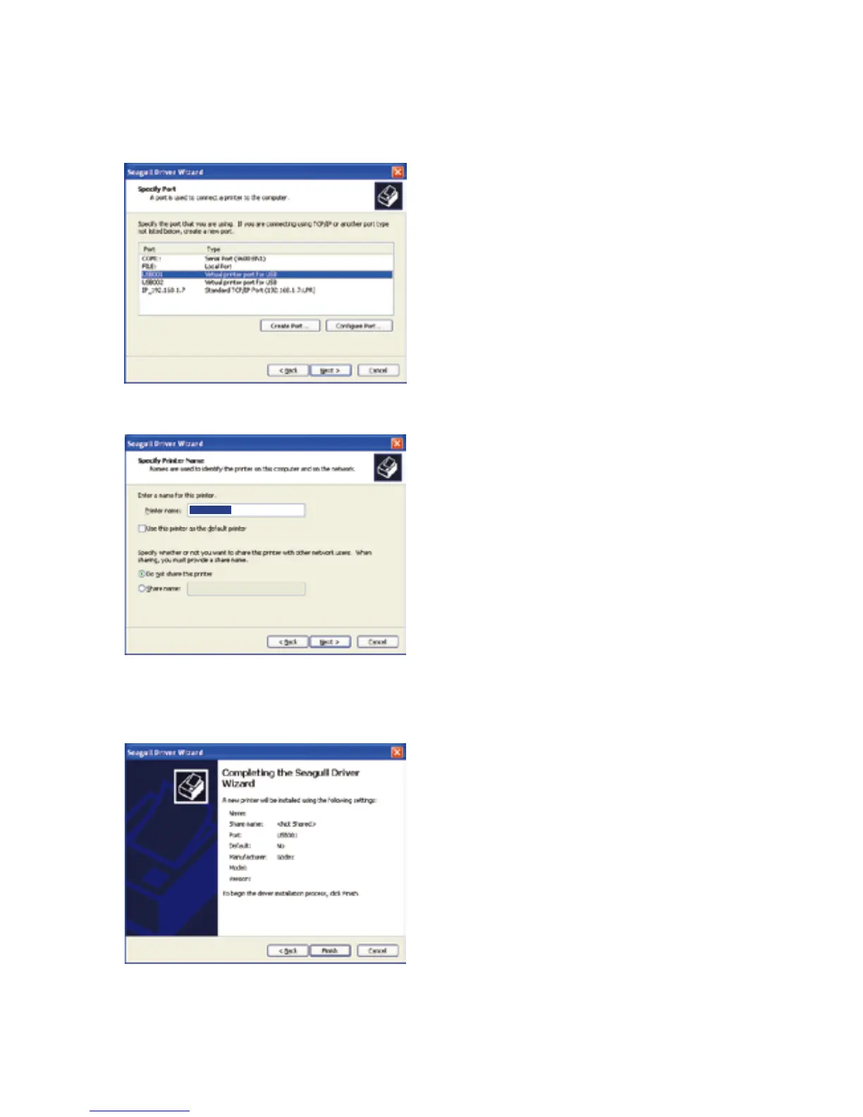 6. Once the installation is complete, a summary of the printer settings is displayed.