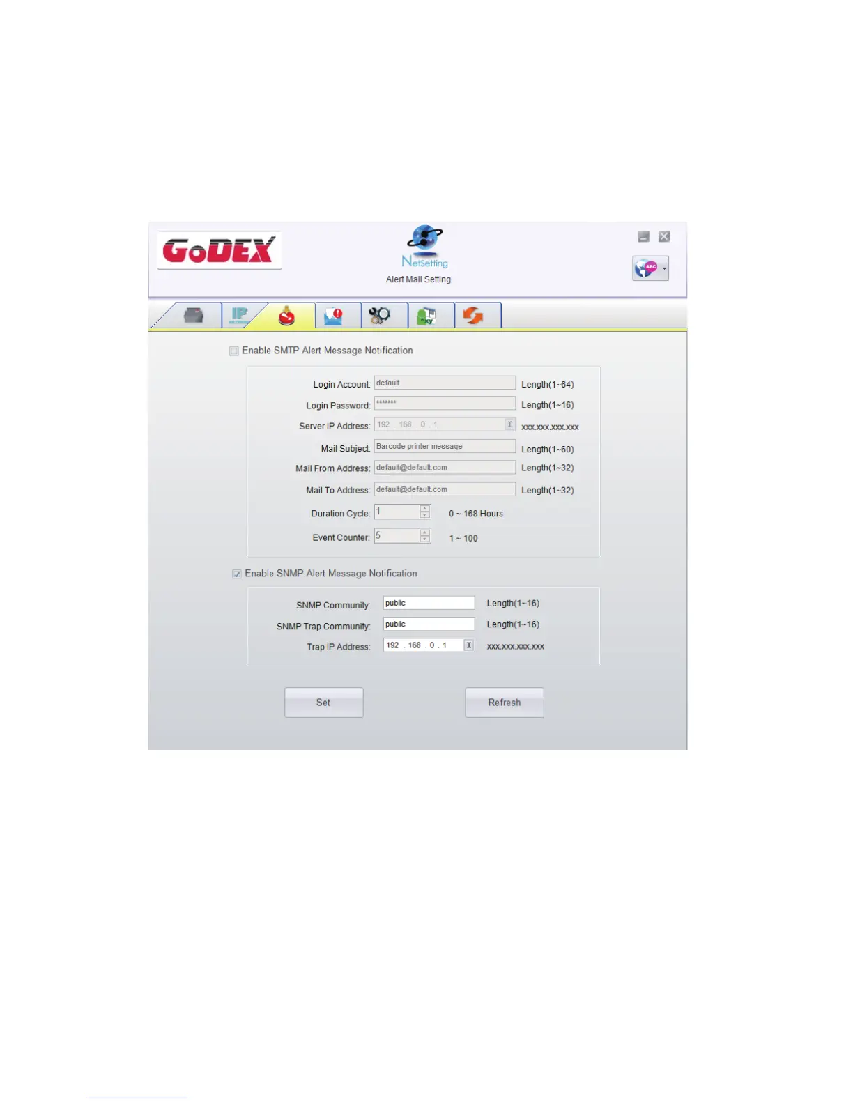 NetSetting will send the alert messages to designated mail account when the error happened on printer. The alert