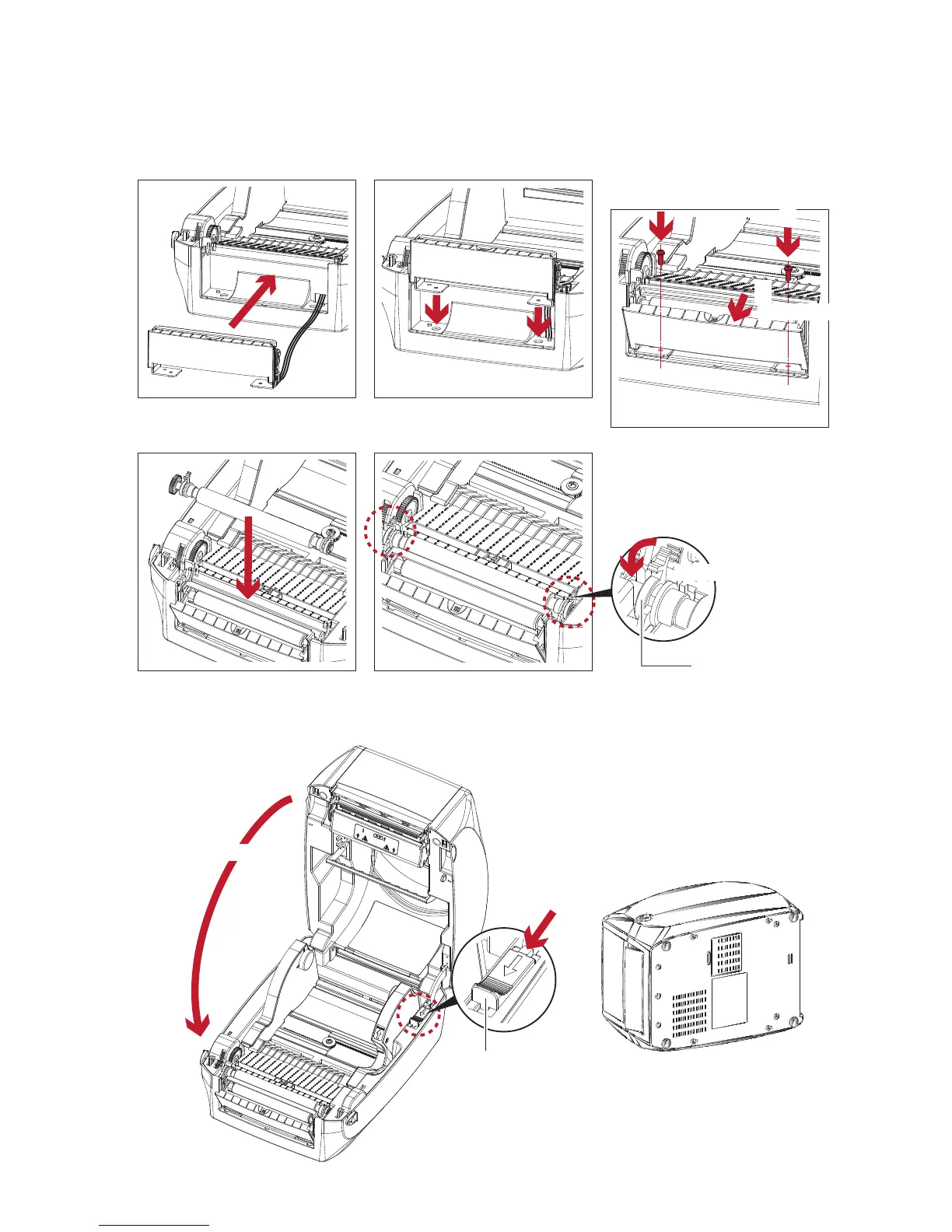 2. Place label dispenser to align both holes of screw and then tighten the screws.