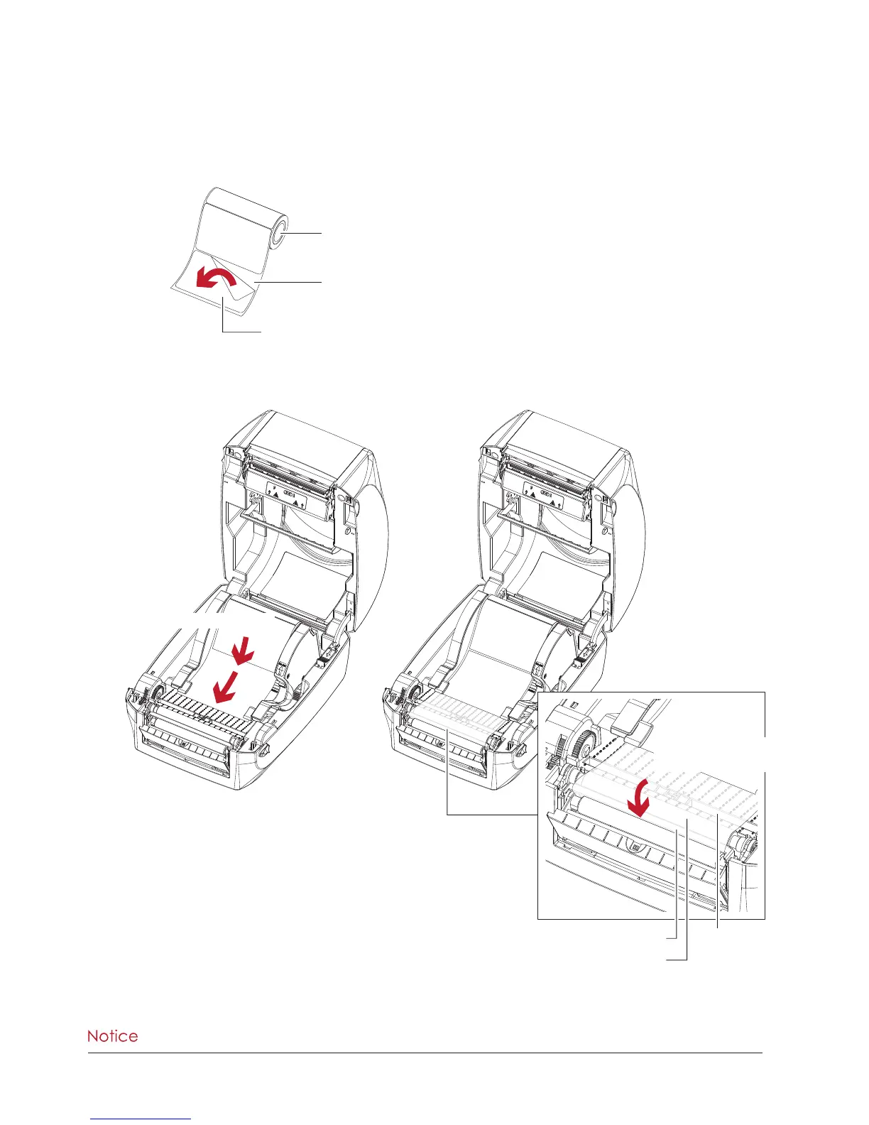2. Feed the Label stock through the label guides.