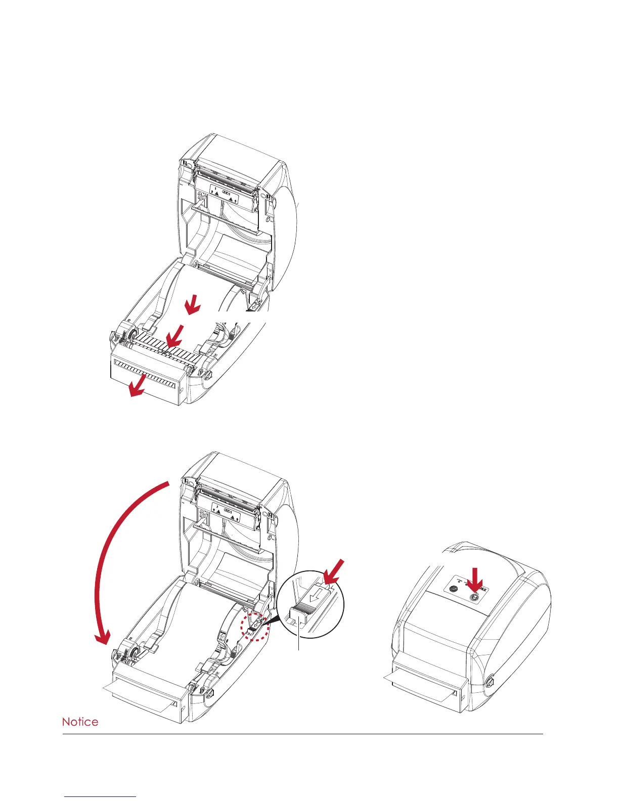 2. Close the top cover and printing mechanism. To finish, press the FEED button to set the label position.
