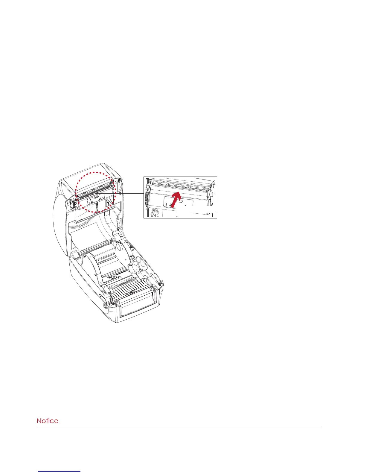 4. To remove any label residue or other dirt from the print head (see red arrow), please use a soft lint-free cloth