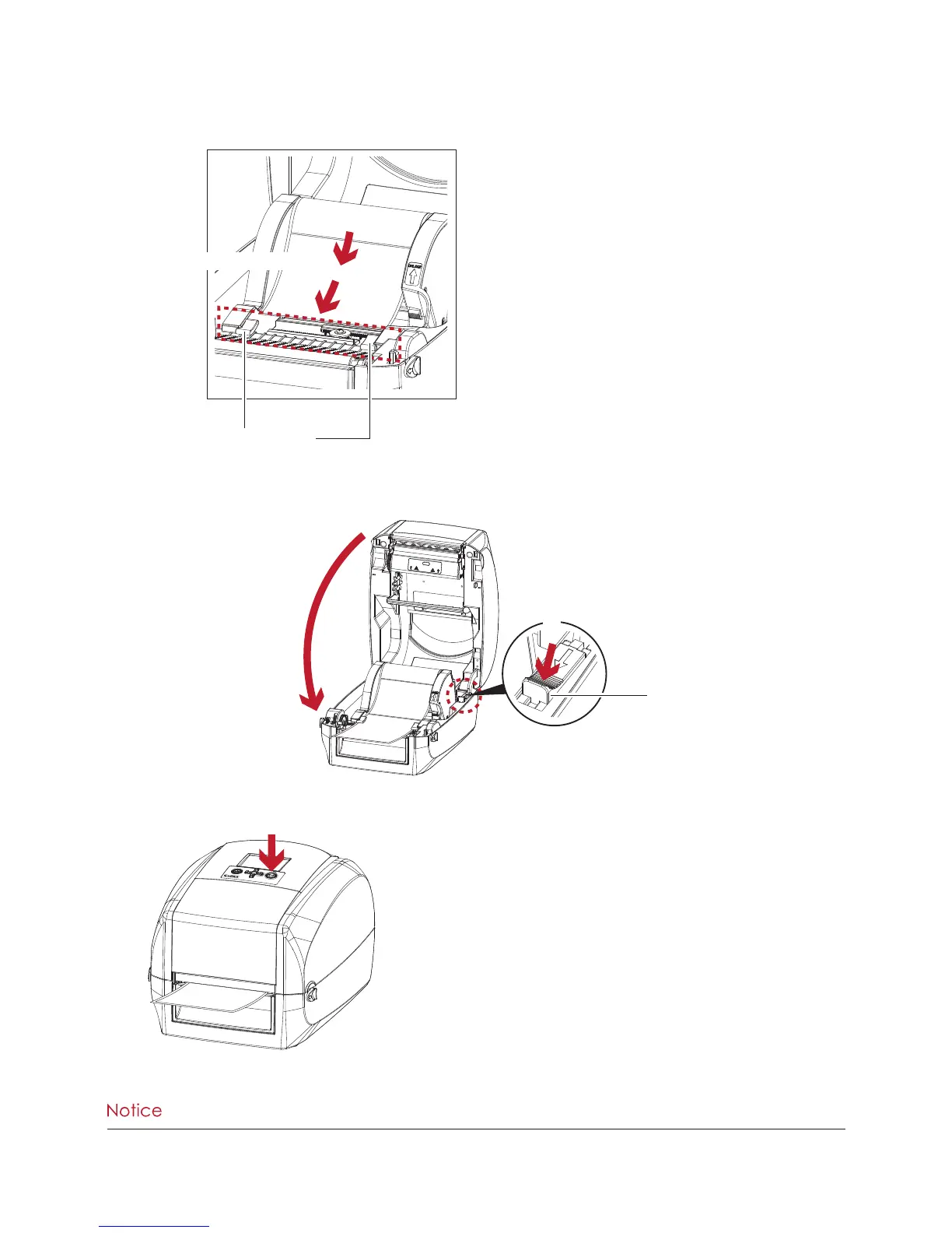 5. Press the FEED key and make sure the label is fed smoothly. The label loading is completed now.