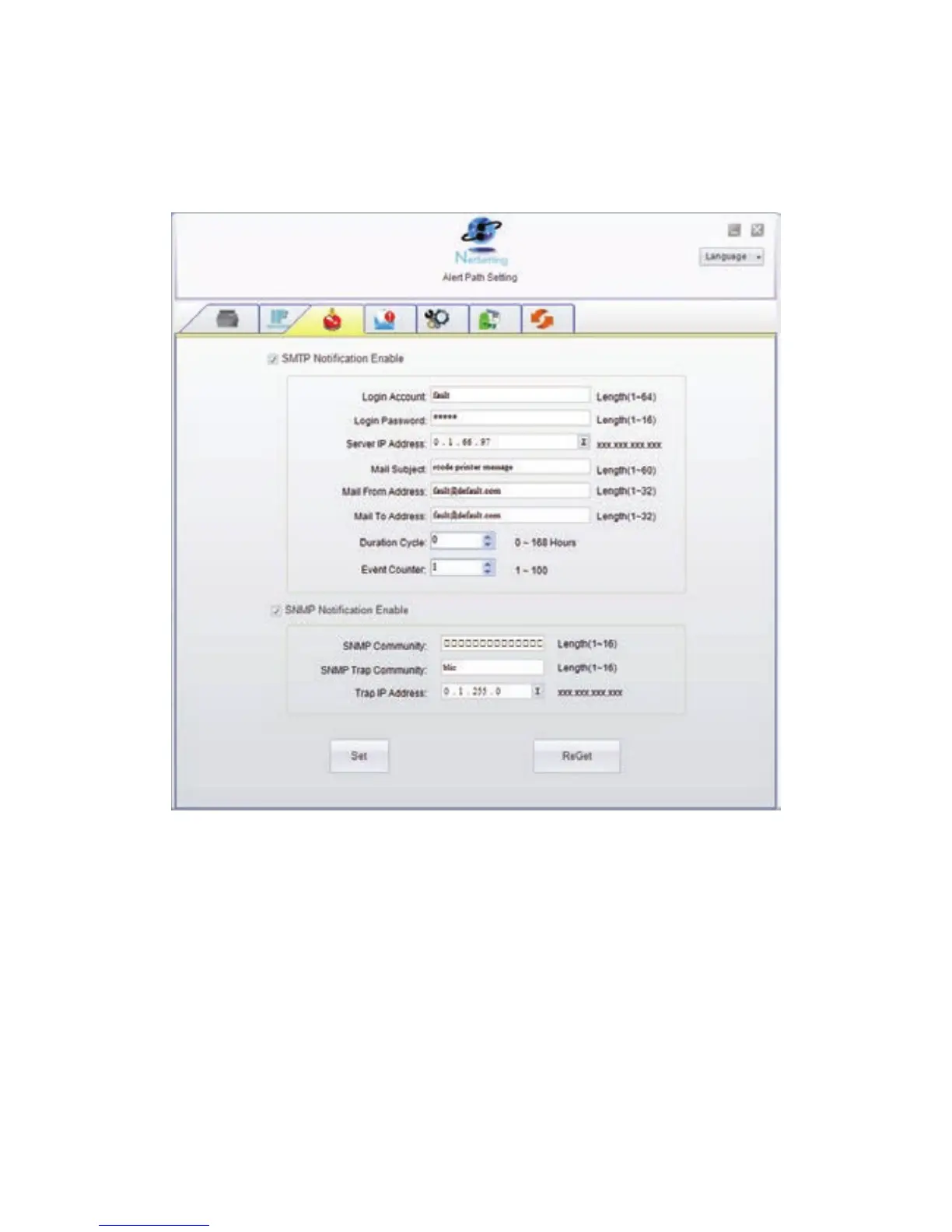 You can press “Set” button to apply the settings and “ReGet” button to refresh the setting values.
