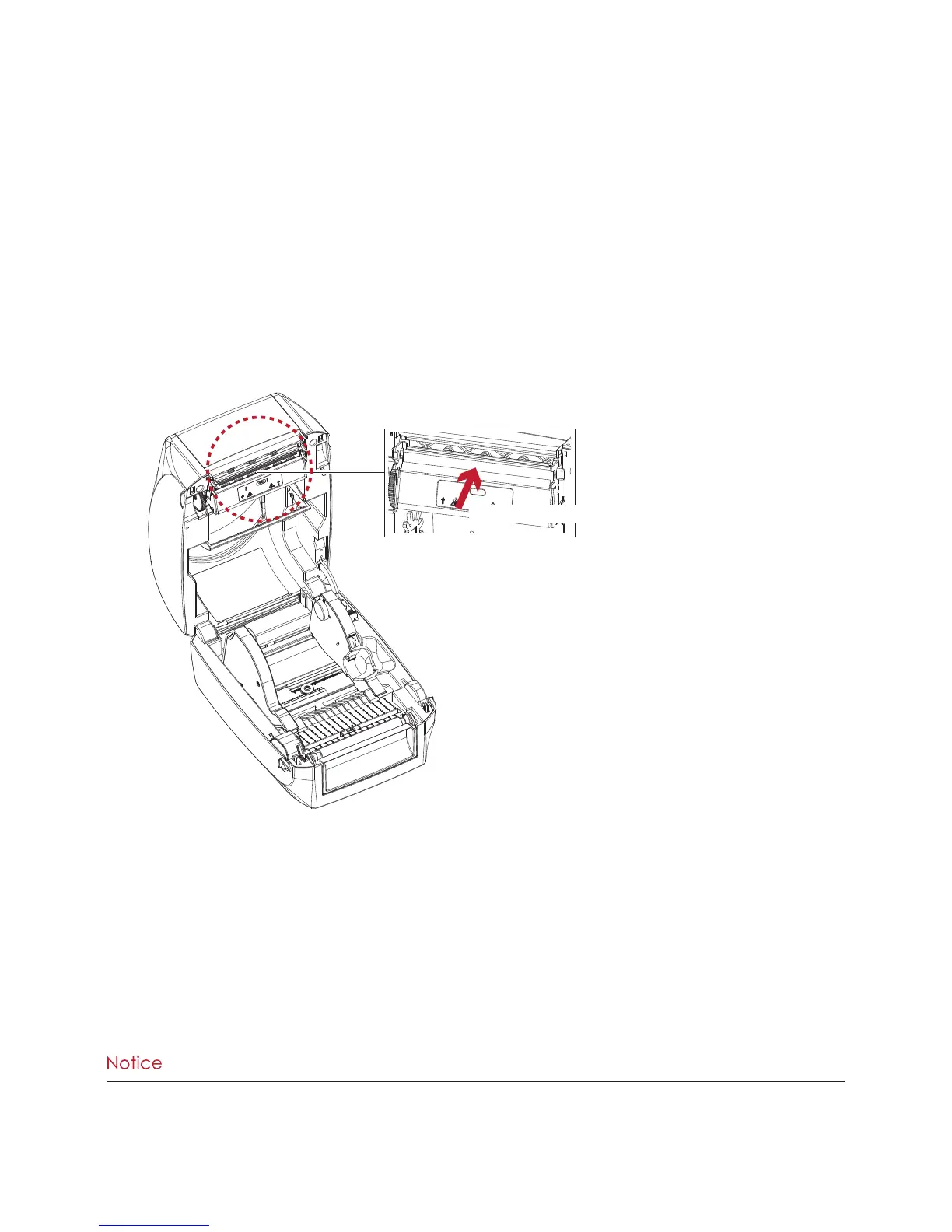 4. To remove any label residue or other dirt from the print head (see red arrow), please use a soft lint-free cloth