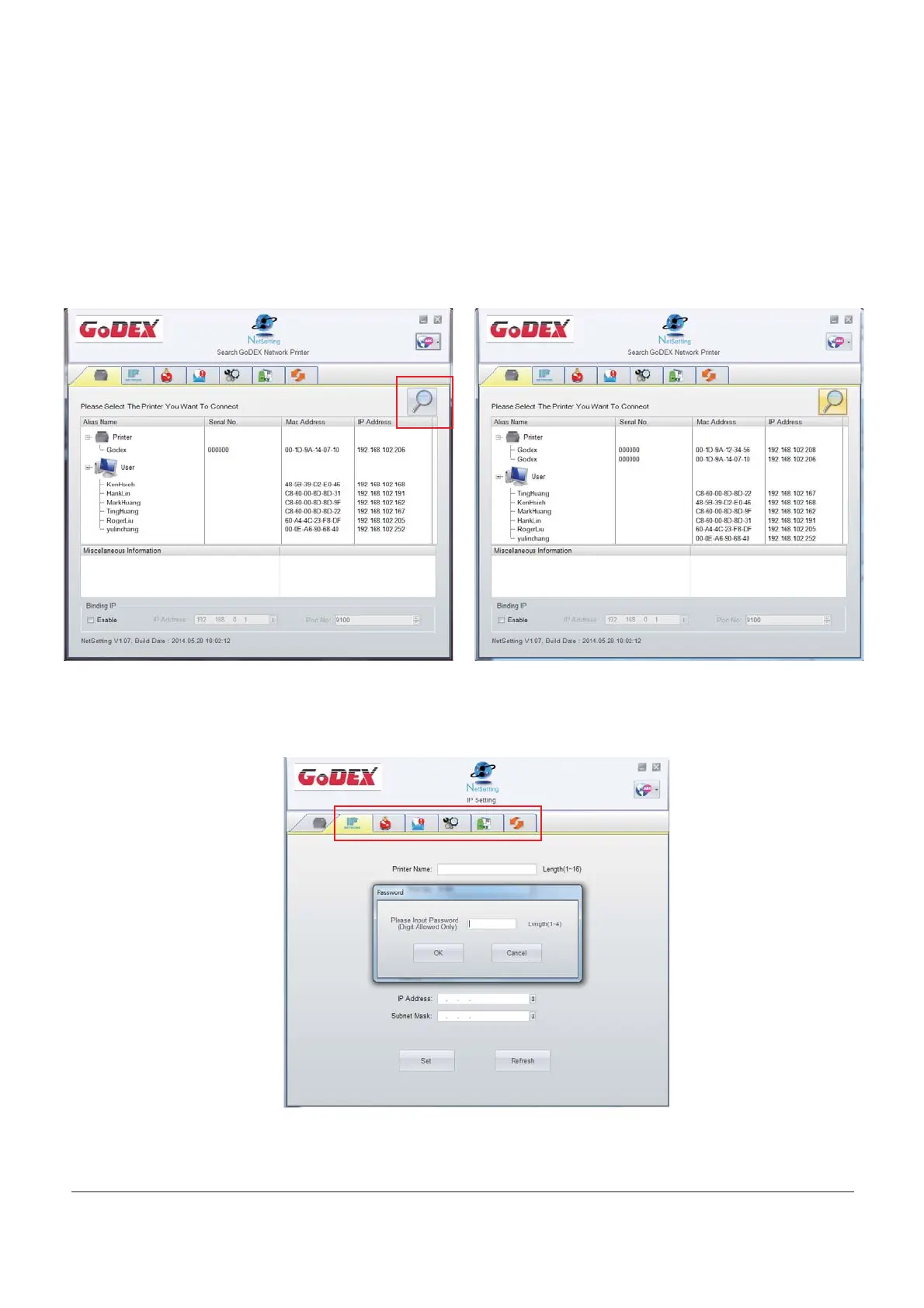 to se a rc h the G o d e x p rinte rs whic h a re c o nne c te d via Ethe rne t p o rt in yo u ne two rk e nviro nm e nt (a s rig ht d ia g ra m).