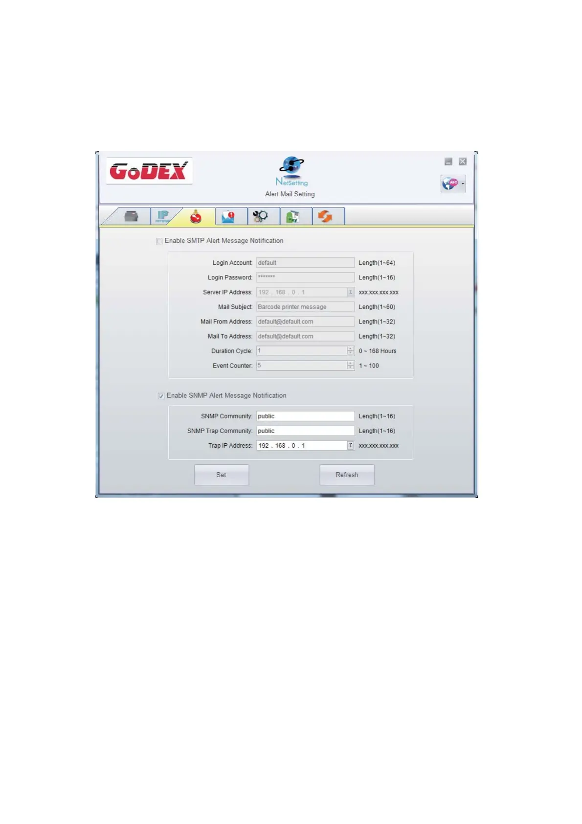 Ne tSe tting will se nd the a le rt me ssa g e s to d e sig na te d ma il a c c o unt whe n the e rro r ha p p e ne d o n p rinte r.