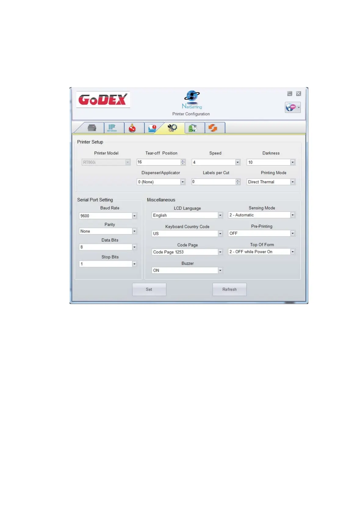Se t o r c ha ng e the c o nfig ura tio ns o f c o nne c te d p rinte r. Mo st o f ke y se tting s fo r the p rinte r o p e ra tio n c a n b e d o ne b y