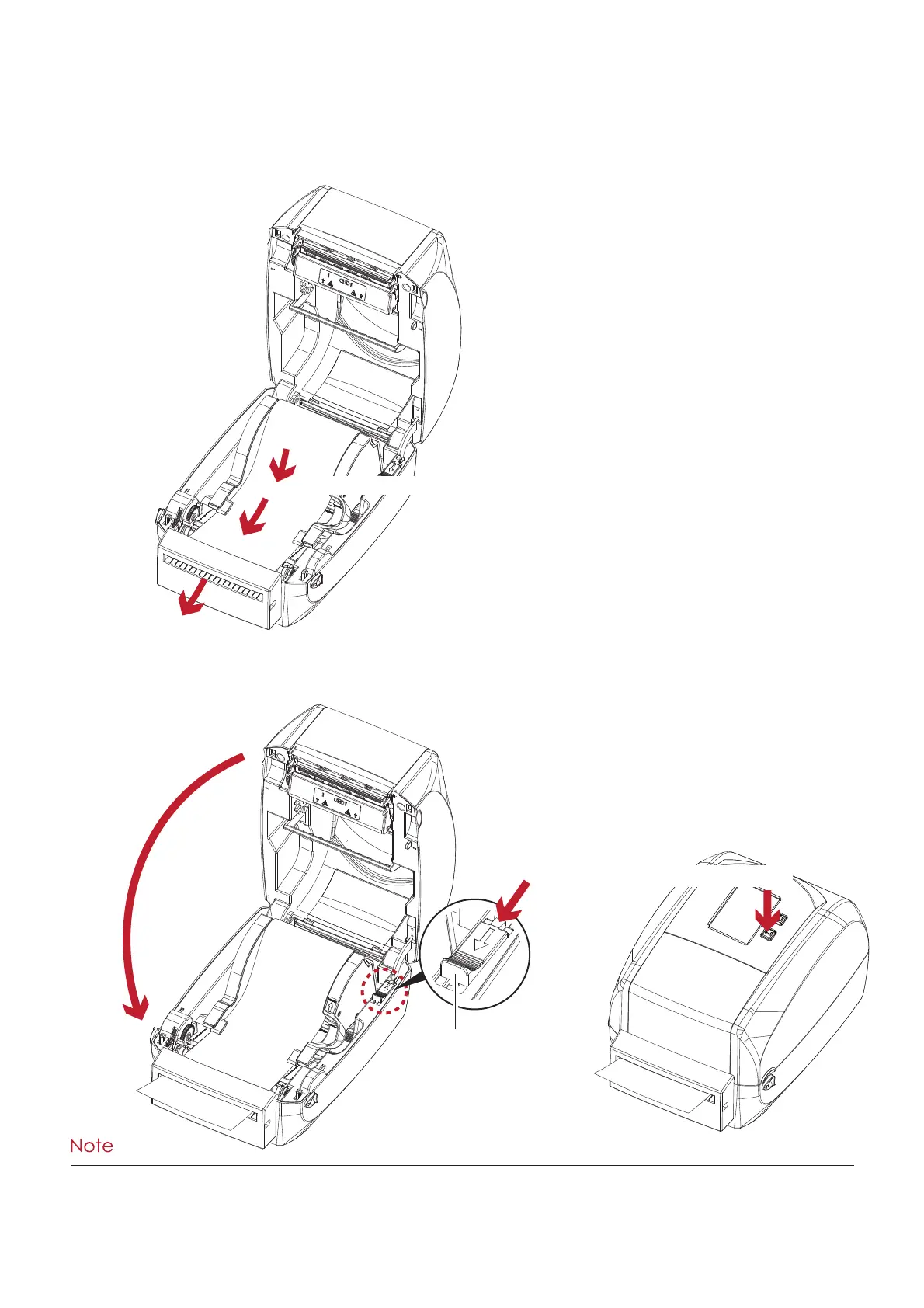 2. C lo se the to p c o ve r a nd p rinting m e c ha nism . To finish, p re ss the FEED b utto n to se t the la b e l p o sitio n.