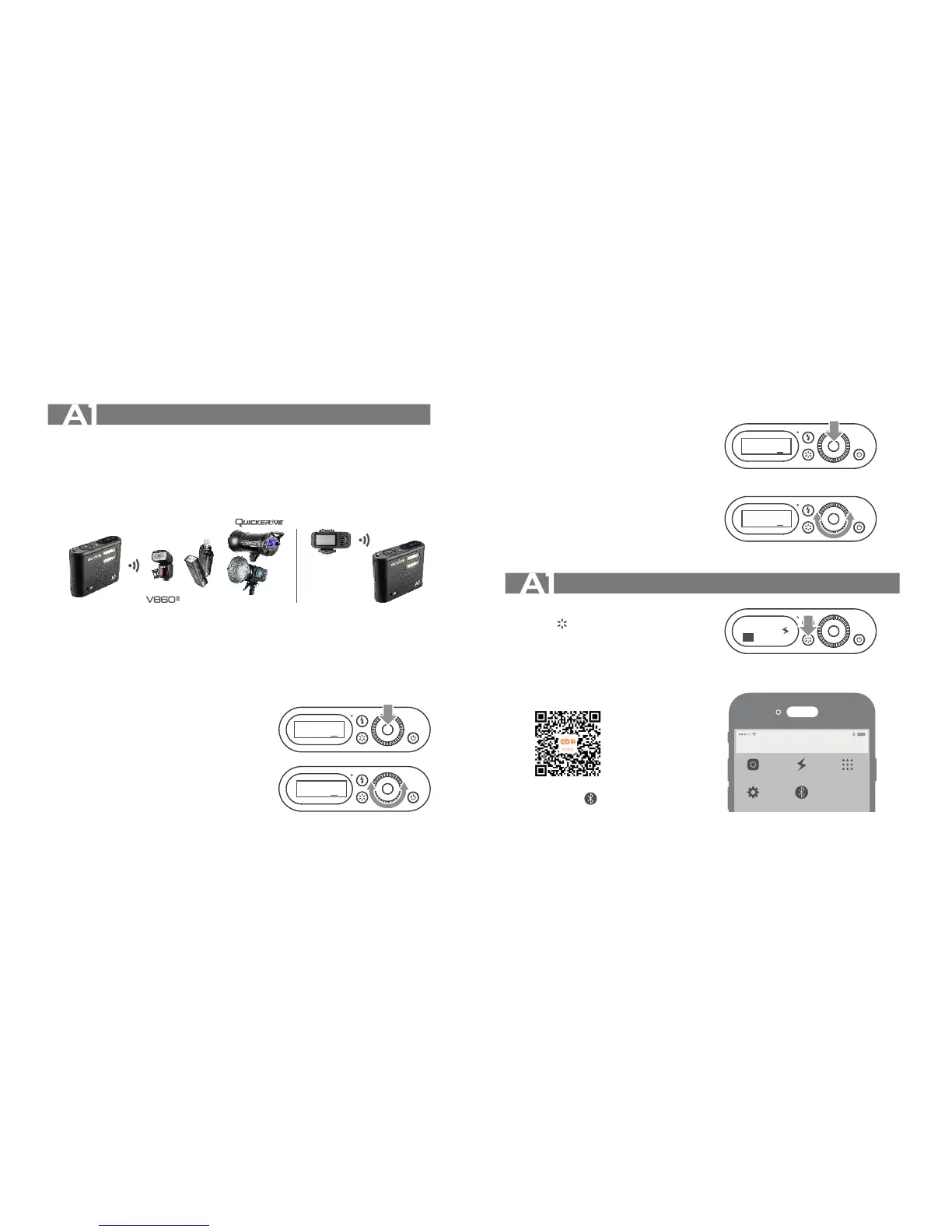 slave unit, A1 can receive the signals of X1 series to fire flashes as well as adjusting