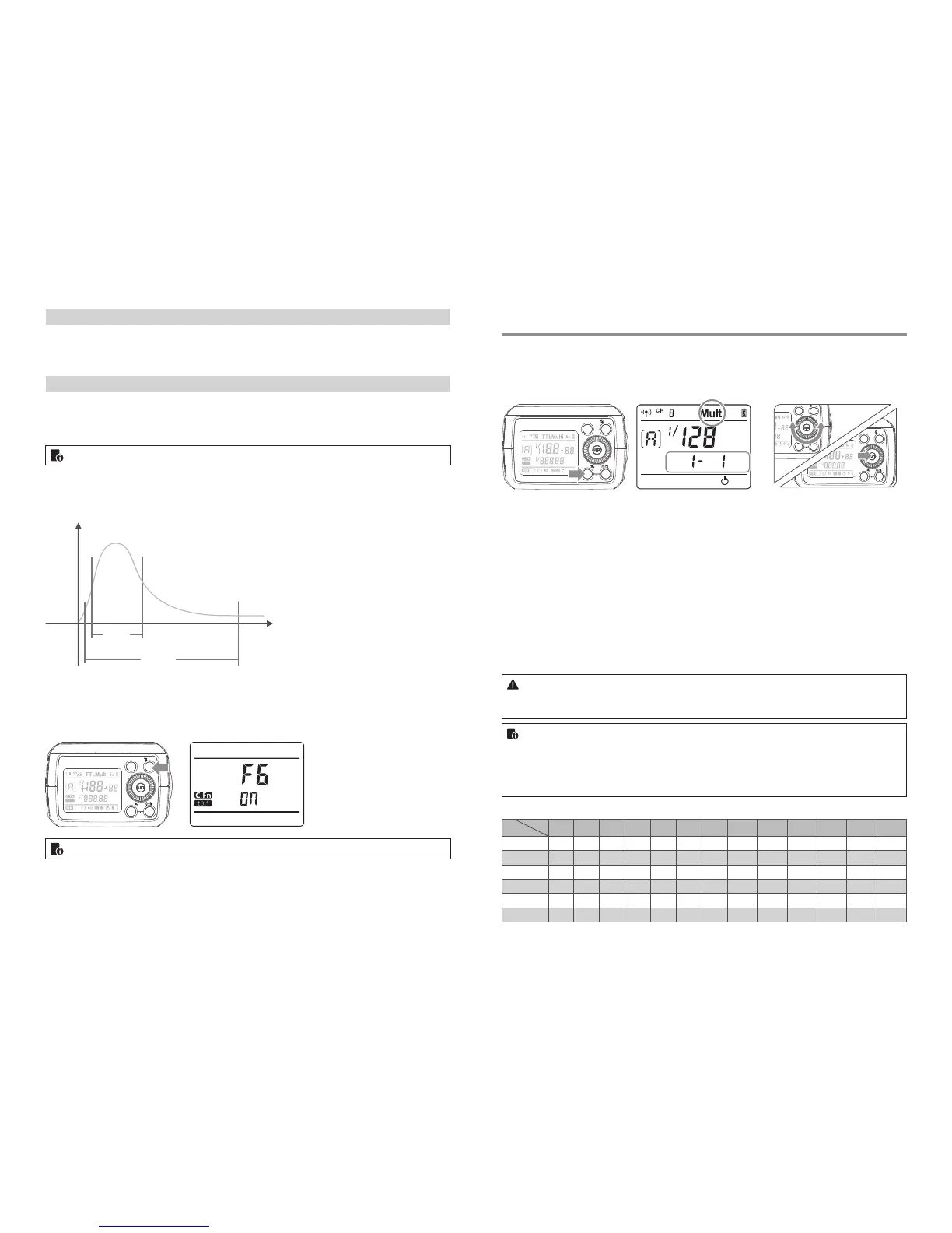 ● A flash output of 1/1 and 1/2 cannot be set for stroboscopic flash.