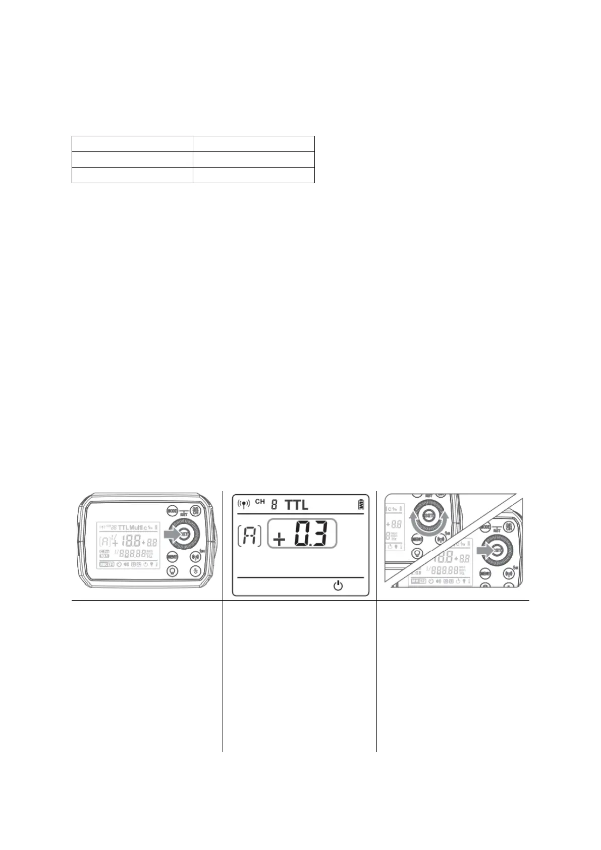 Press <MODE> Mode Selection Button to enter TTL mode. The AV panel is displayed
