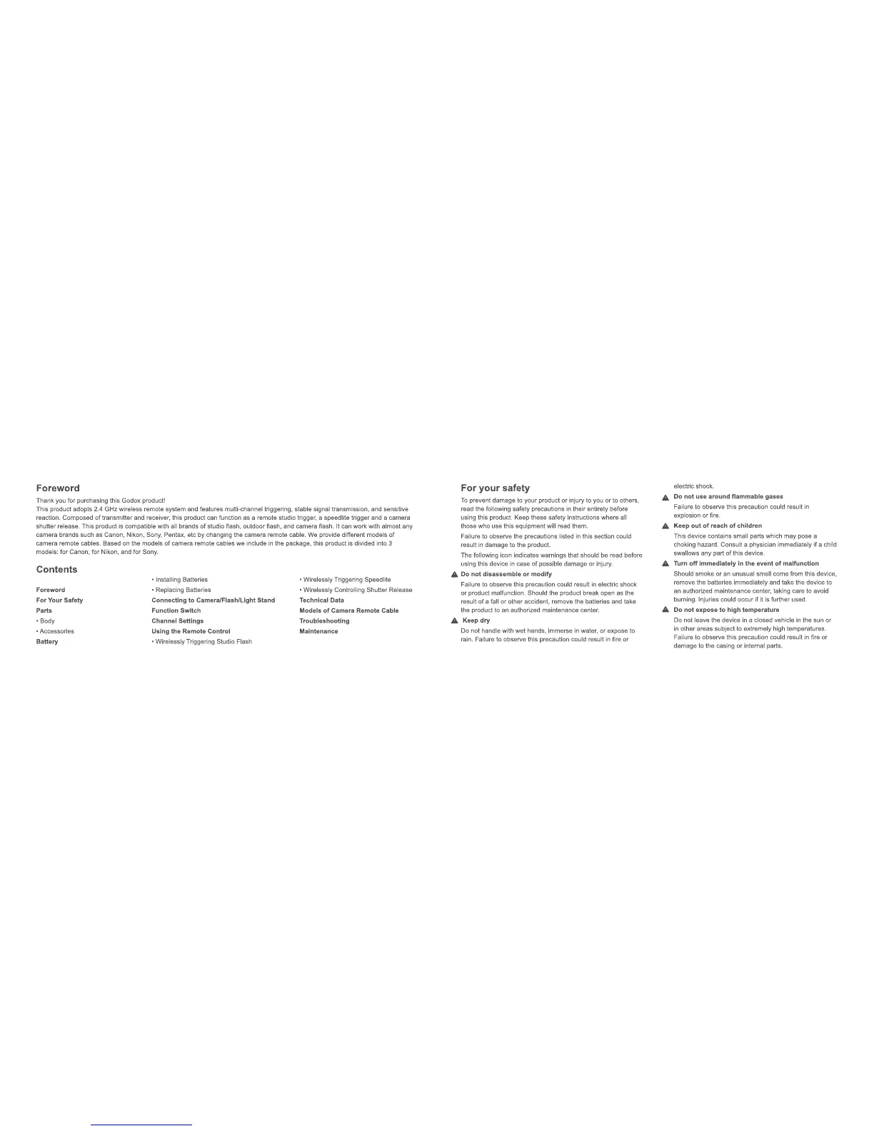 Godox FC-16 - Foreword; For Your Safety; General Safety Precautions