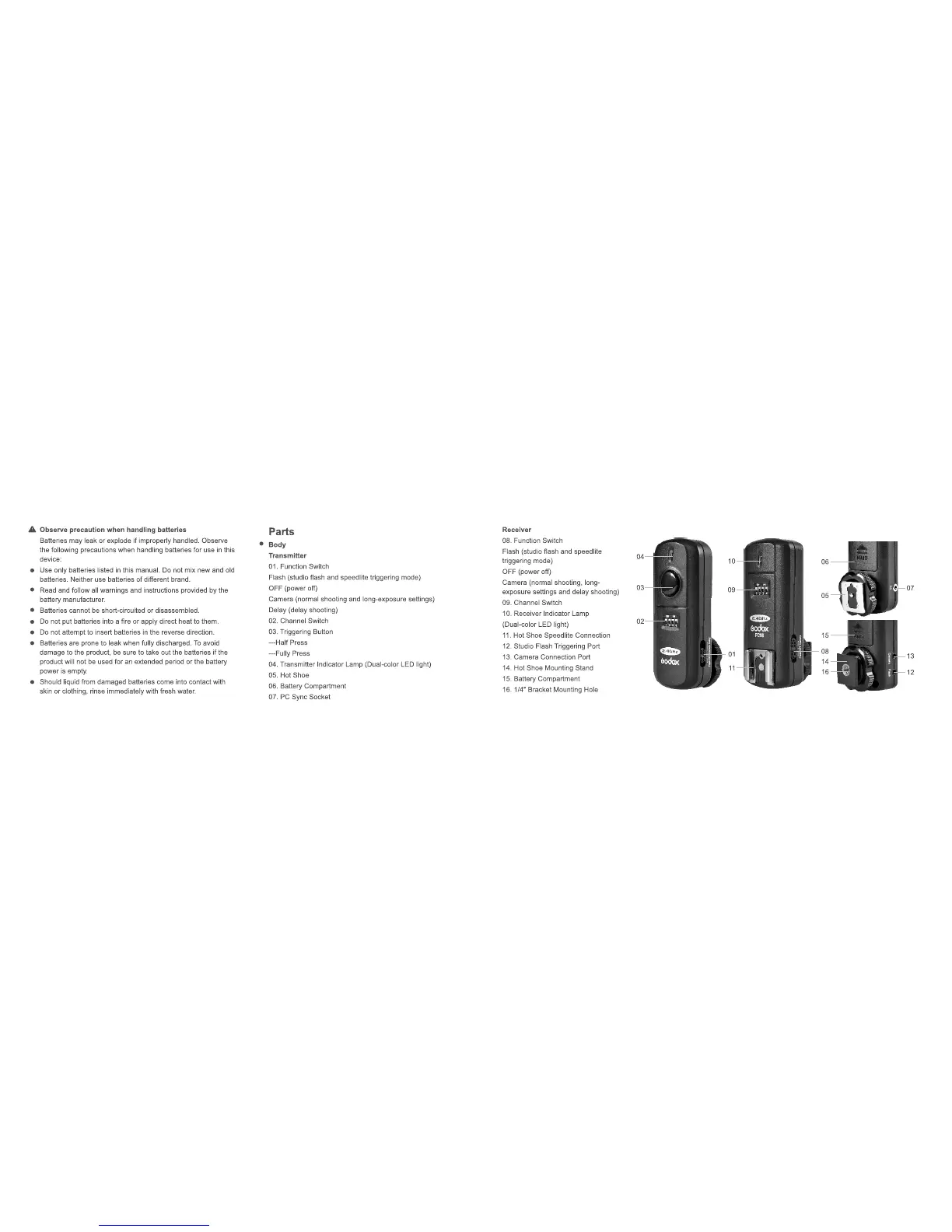 Godox FC-16 - Parts; Transmitter Components; Receiver Components; Battery Installation
