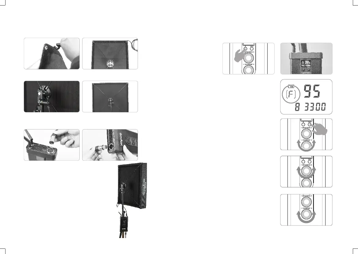 2. Use a connect holder to install the foldable bracket and flexible LED light on the