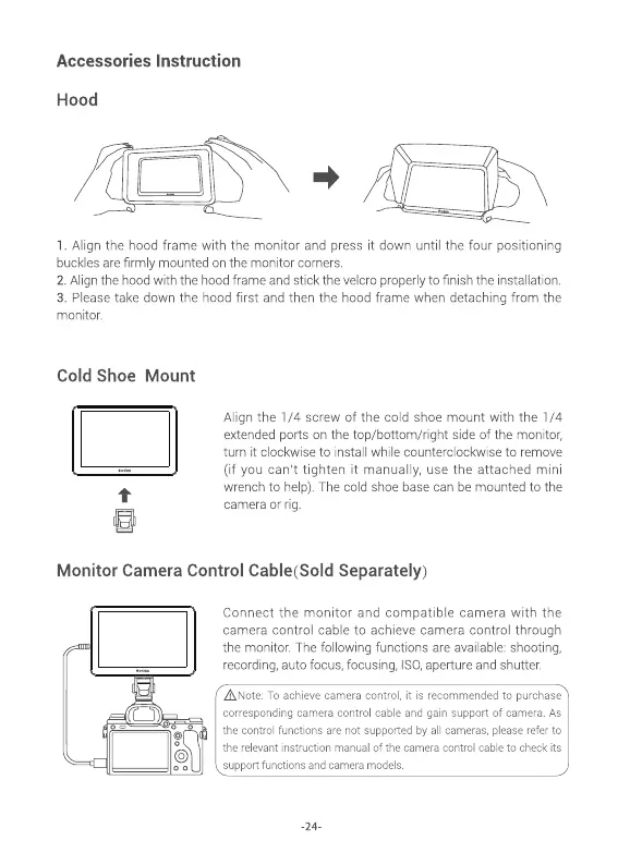 Godox GM6S - Accessories Instruction; Hood; Cold Shoe Mount; Monitor Camera Control Cable