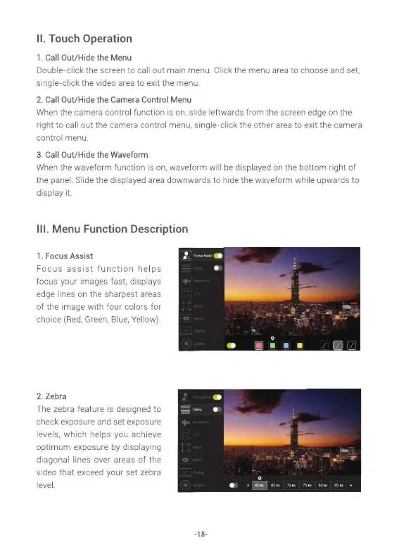 Godox GM6S - Touch Operation; Menu Functions Overview