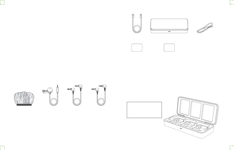 配件: ①防风毛罩 ②全向型领夹式麦克风 ③3.5mm TRS-TRS 音频连接线(相机适配