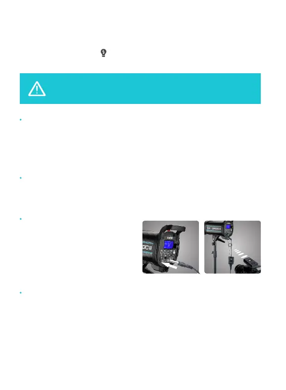 Use the power cord to connect the flash to an AC power source and turn on the