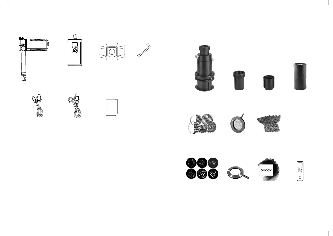 Light Body *1 Controller *1 Barndoor Set *1 Wrench *1