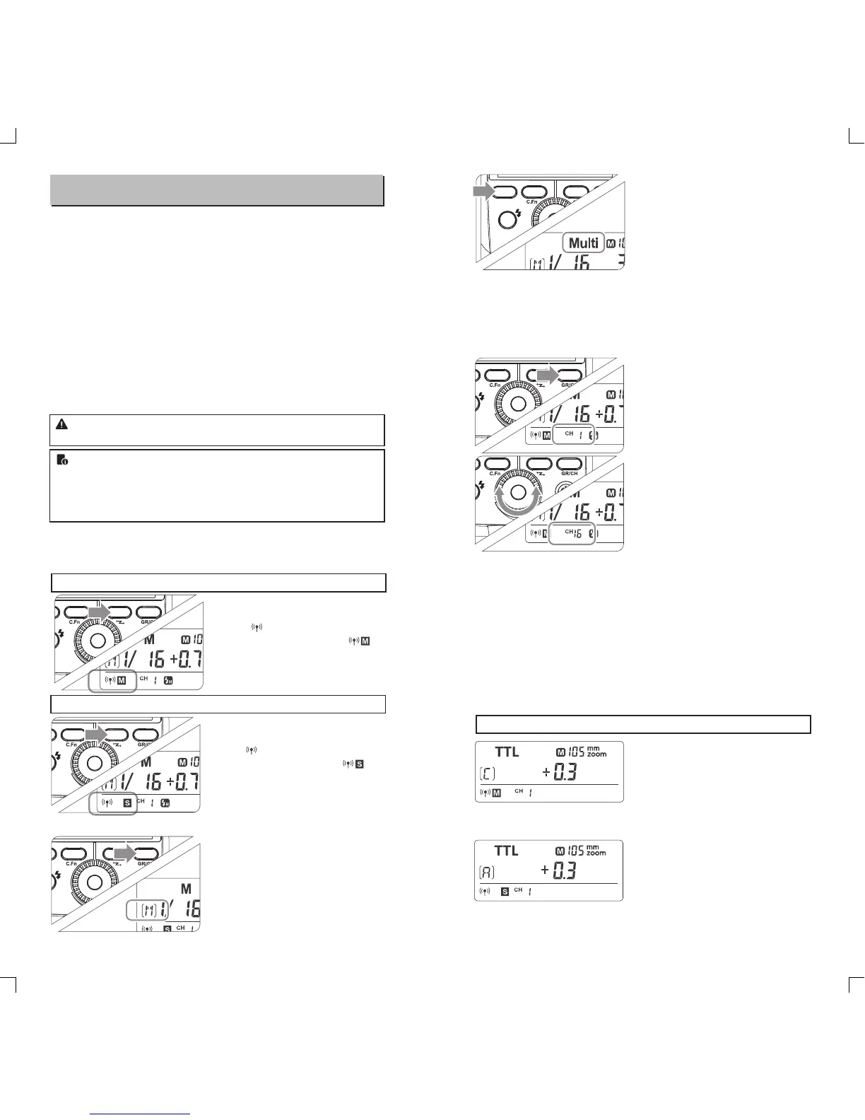 ● Any flash settings for the slave units on the master flash in TTL