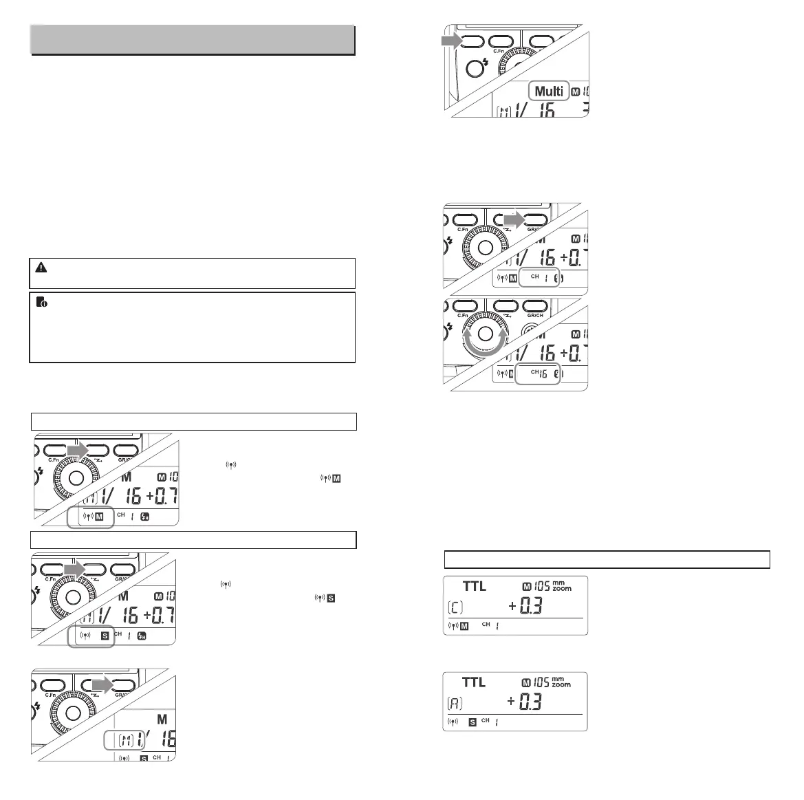 ● This flash can work in TTL /M /Multi / OFF flash modes when set