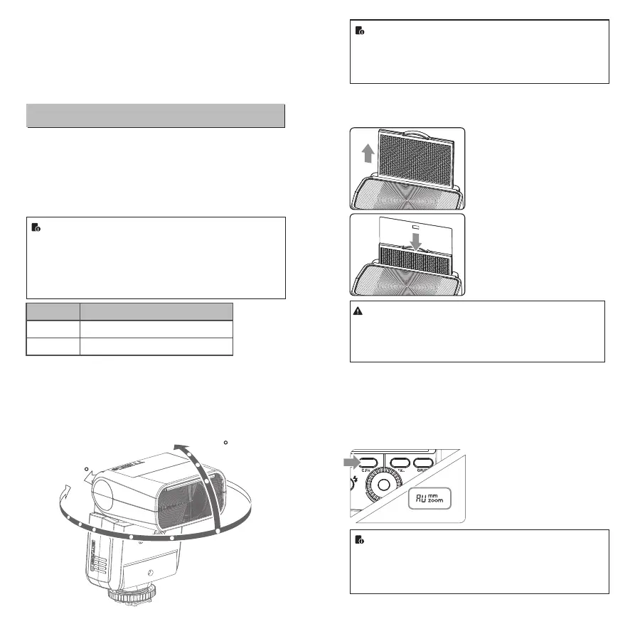 ● Point the flash head straight ahead and then upward by 90°.