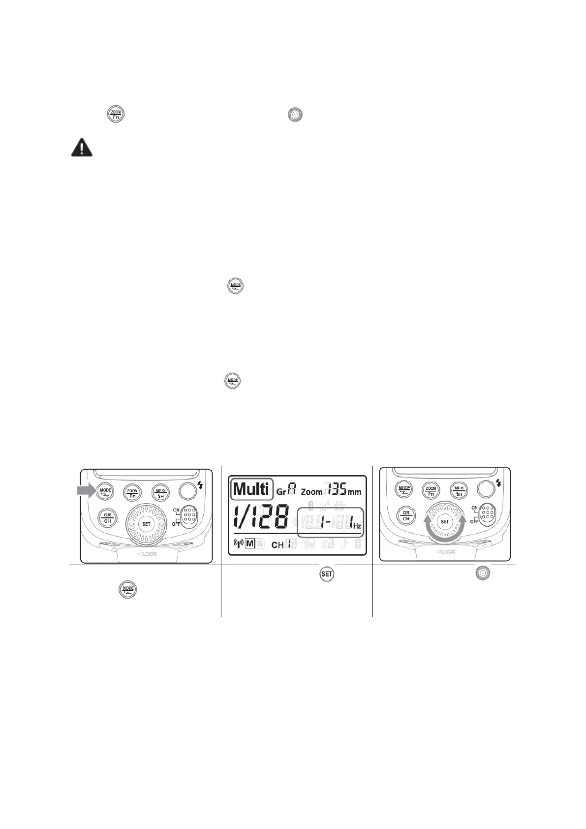 Press Mode Selection Button < > to enter Multi mode (Stroboscopic flash). With
