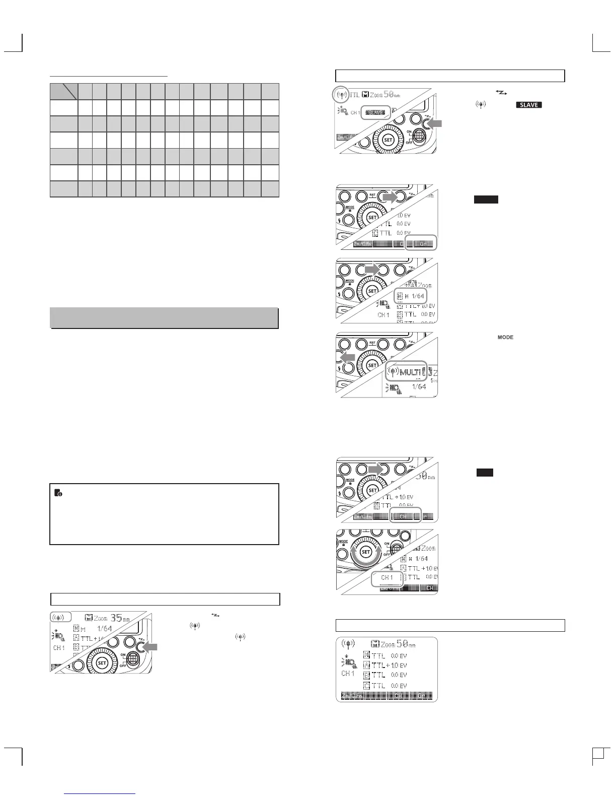 ● You can set up three slave groups for TTL autoflash shooting.