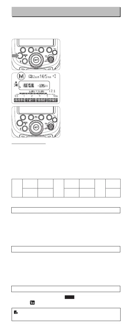 ● A flash output of 1/1 and 1/2 cannot be set for stroboscopic