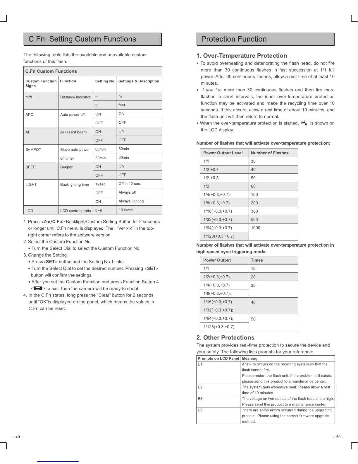 Godox TT685S - C.Fn: Setting Custom Functions; Custom Function Settings; Protection Function; Over-Temperature Protection