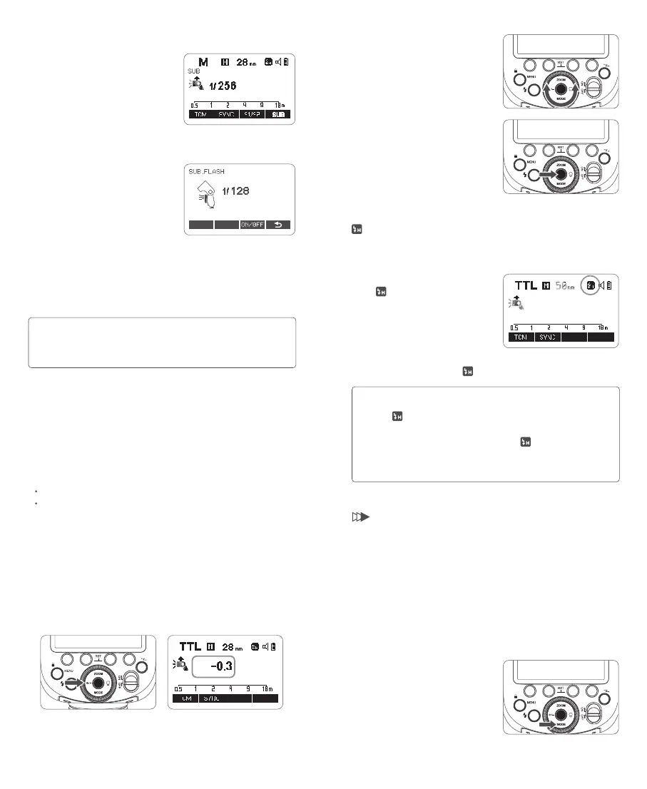 短按功能按键 4<SUB> 即可进入辅助闪光