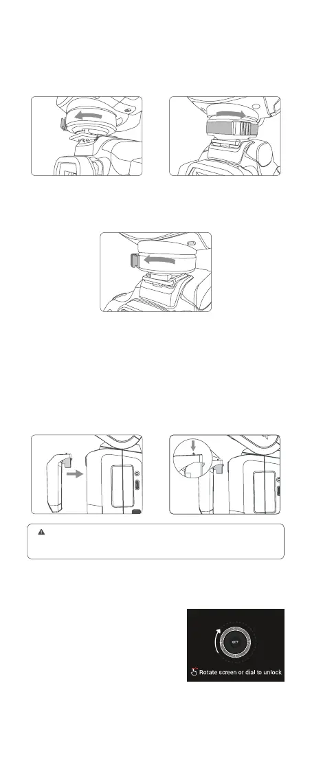 Installing the camera flash: Rotate the hot shoe xing buckle and rotate it