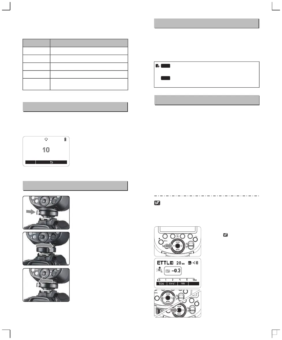 *按下< MODE>模式选择按钮,三种闪光模式将会依次出现在液晶