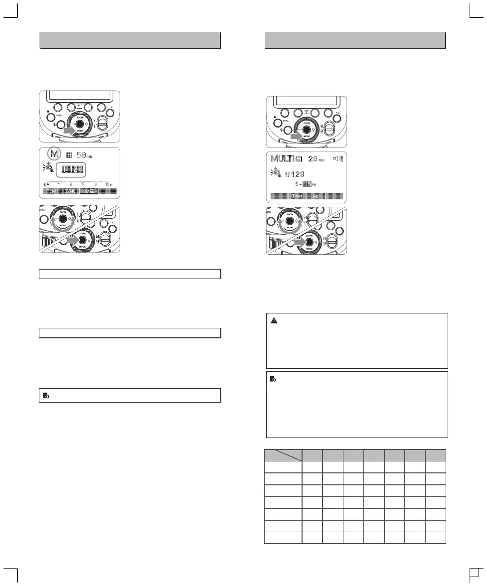 ● 闪光输出为1/1和1/2时不能设置频闪闪光。