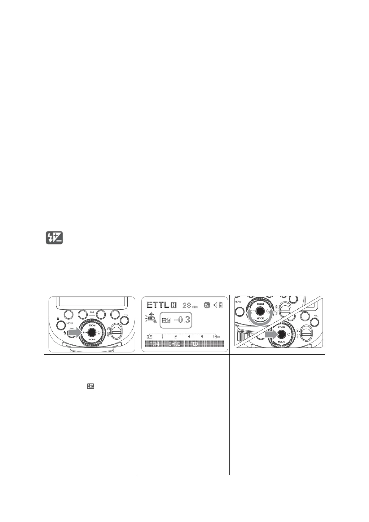 Nyomja meg a <MODE> módválasztó gombot az E-TTL módba való belépéshez. Az