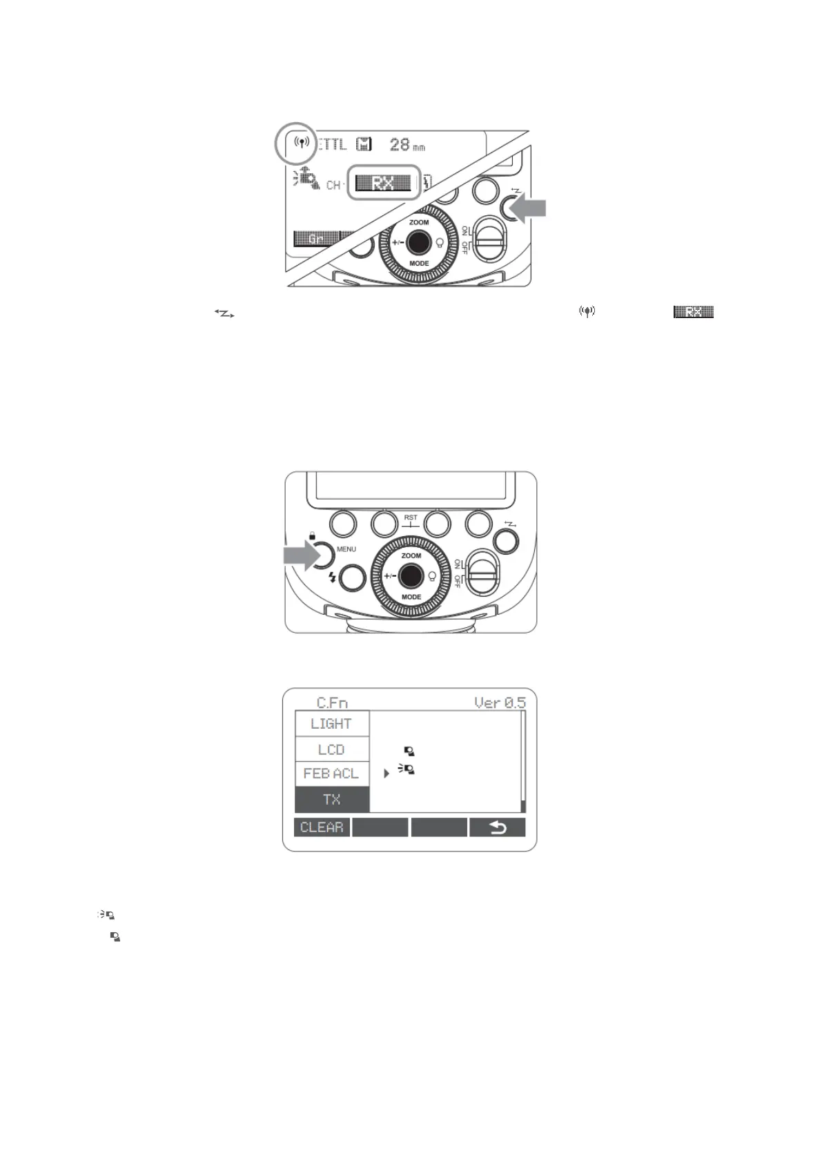 <>: Az adóegység vakugyújtása BE van kapcsolva.